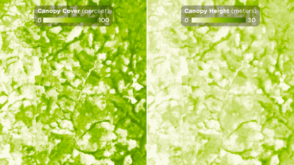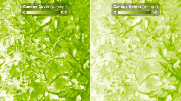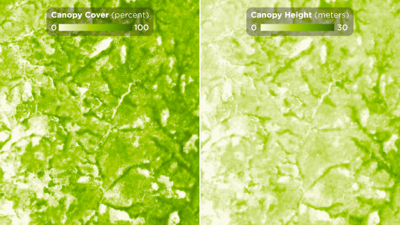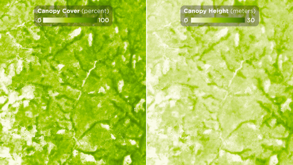 Trees absorb carbon dioxide and store it as carbon in their biomass. Our dataset quantifies Forest Carbon, Canopy Height, and Canopy Cover anywhere trees grow on Earth.